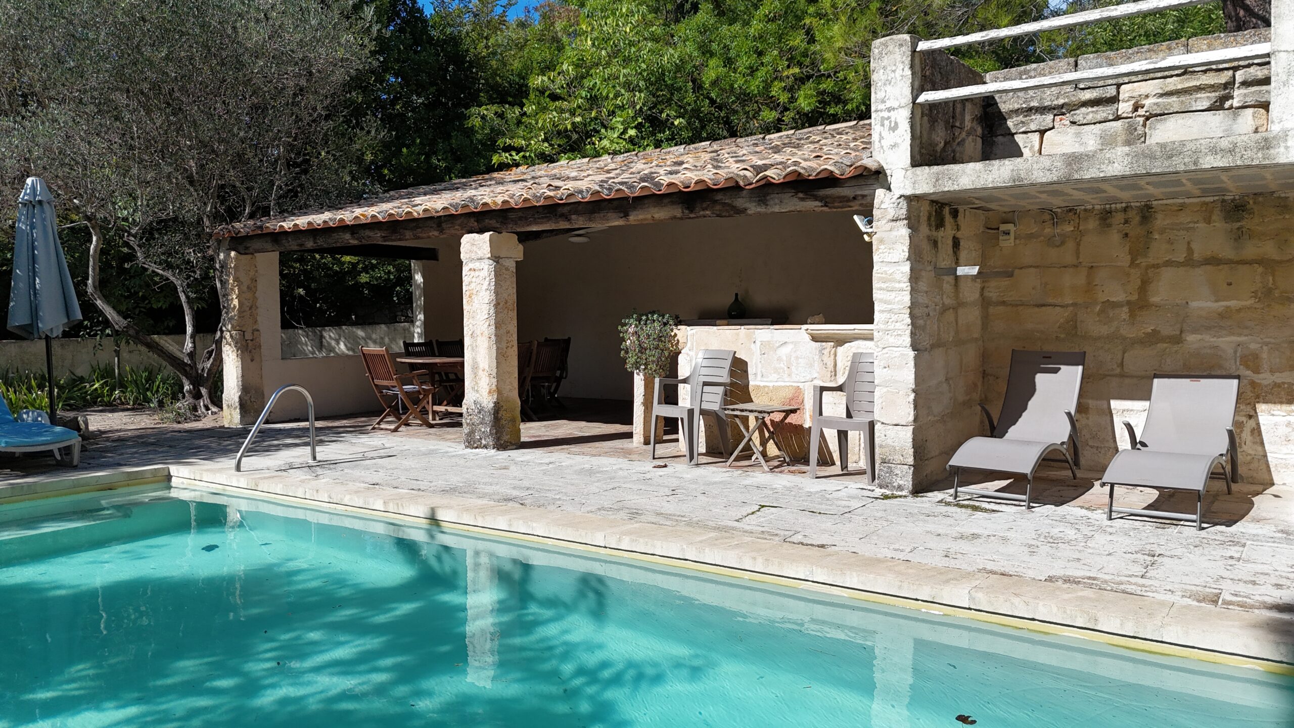 A Maussane-Les-Alpilles, découvrez cette agréable maison d’environ 150 m², nichée sur un terrain clos de plus de 1 800 m².  Située dans un cadre paisible, à l’abri de toute nuisance et sans aucun vis-à-vis, elle garantit une tranquillité absolue. L\'intérieur propose une spacieuse pièce de vie lumineuse, réunissant une cuisine contemporaine entièrement équipée, un  salon convivial et une salle à manger chaleureuse, idéale pour les moments en famille ou entre amis. Côté nuit, la maison comprend trois chambres confortables, dont une suite parentale élégante avec dressing, offrant un espace personnel raffiné et fonctionnel. À l’extérieur, le jardin paysagé et la piscine chauffée de type bassin en pierre invitent à la détente, tandis qu’un pool-house avec une chambre indépendante supplémenataire permet d’accueillir vos invités dans un espace dédié et discret. Enfin, une grande dépendance d’environ 150 m² complète ce bien d’exception. Entièrement modulable, elle offre de multiples possibilités d’aménagement selon vos projets : atelier, logement secondaire, bureau ou espace de loisirs.